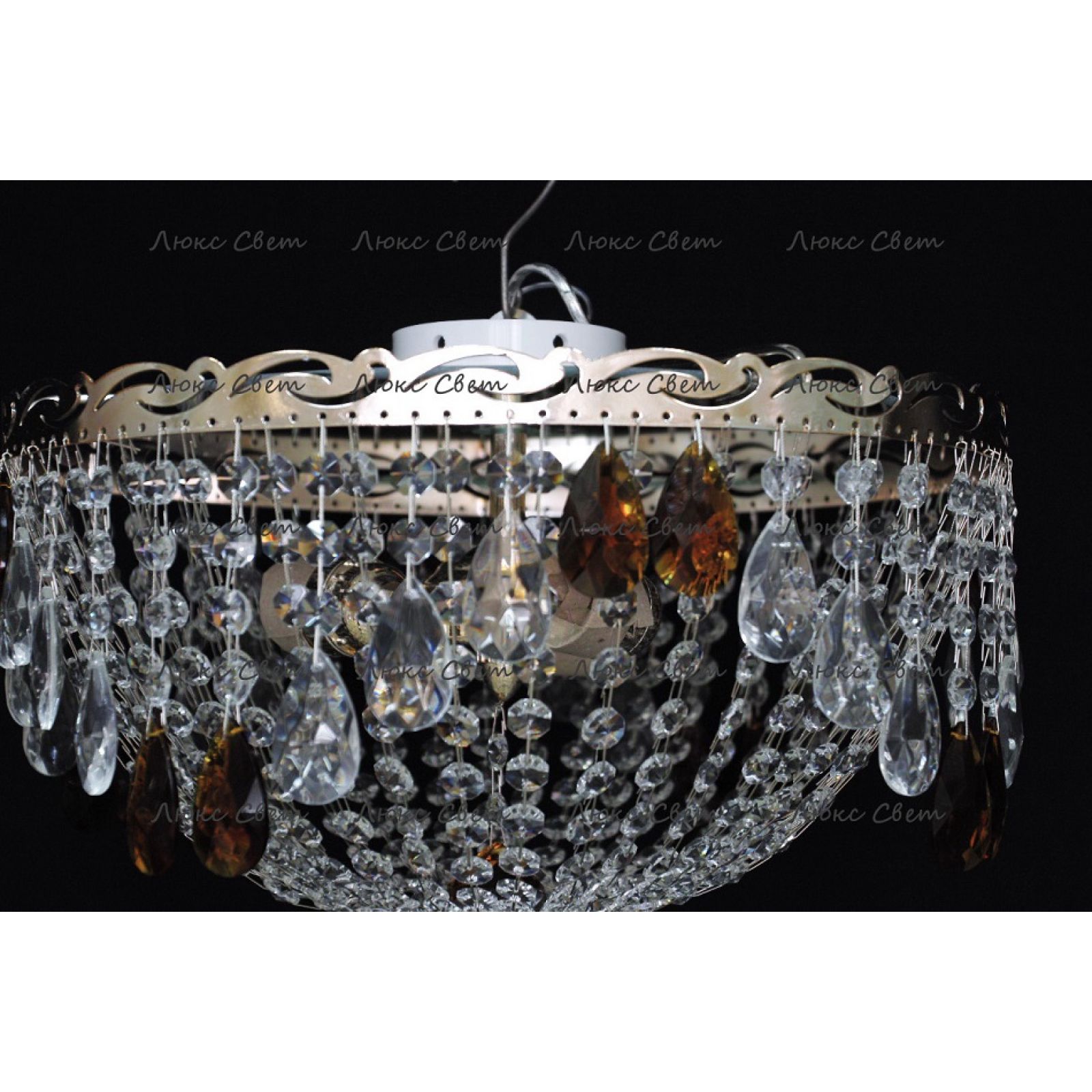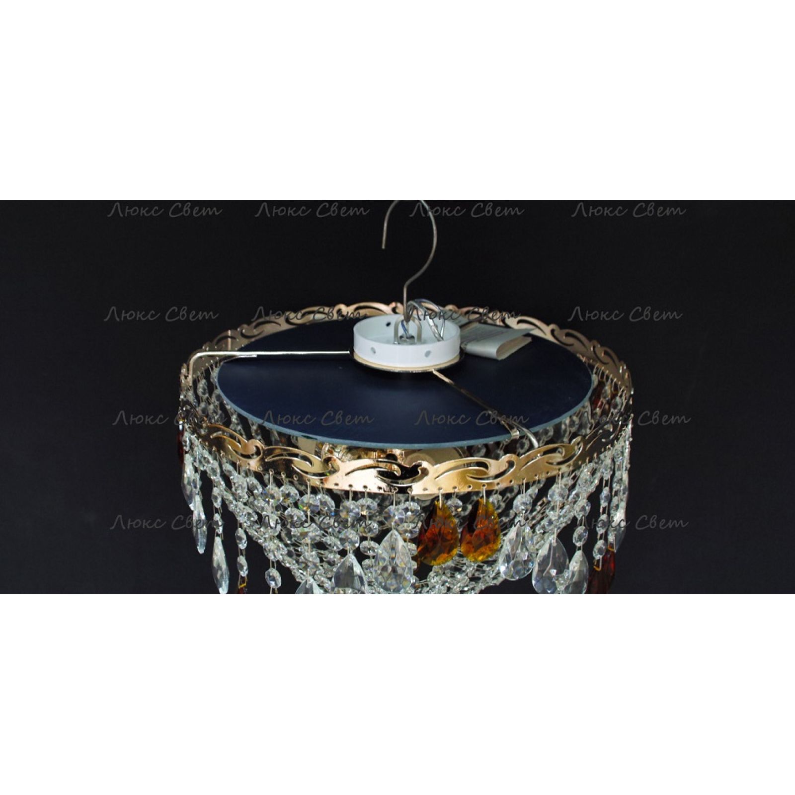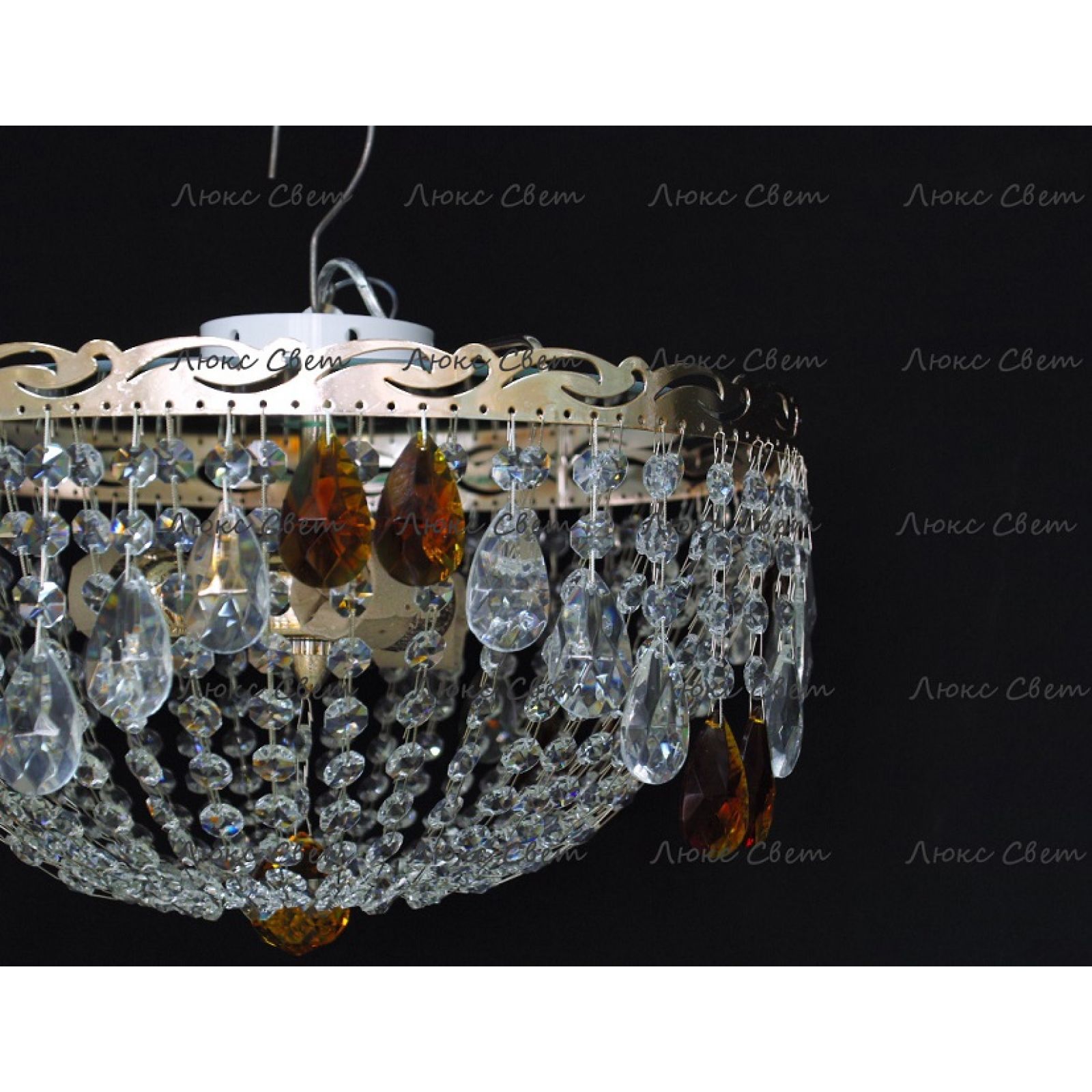 Потолочная люстра Анжелика журавлик чайная от российского производителя светильников Гусь-Хрустальный идеально подойдет для освещения зала, гостиной, спальни. Люстра выполнена в классическом стиле с изящными хрустальными подвесками. Арматура светильника выполнена из металла, цоколь - E27. Цвет арматуры - золотой или серебристый, на выбор. В основании люстры расположено зеркало, которое отражает свет и усиливает освещенность комнаты.