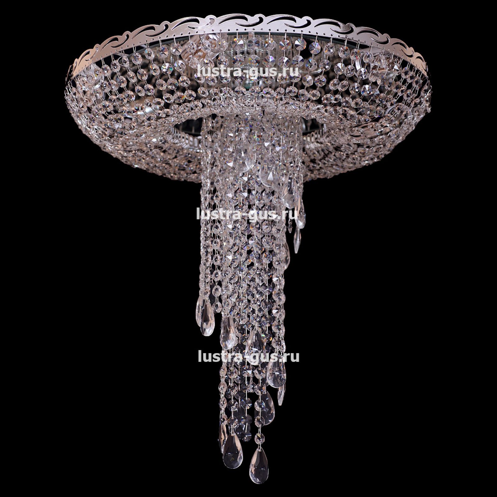 Потолочная люстра Анжелика от российского производителя светильников Гусь-Хрустальный идеально подойдет для освещения зала, гостиной, спальни. Люстра выполнена в классическом стиле с изящными хрустальными подвесками. Арматура светильника выполнена из металла, цоколь - E27. Цвет арматуры - золотой или серебристый, на выбор. В основании люстры расположено зеркало, которое отражает свет и усиливает освещенность комнаты.