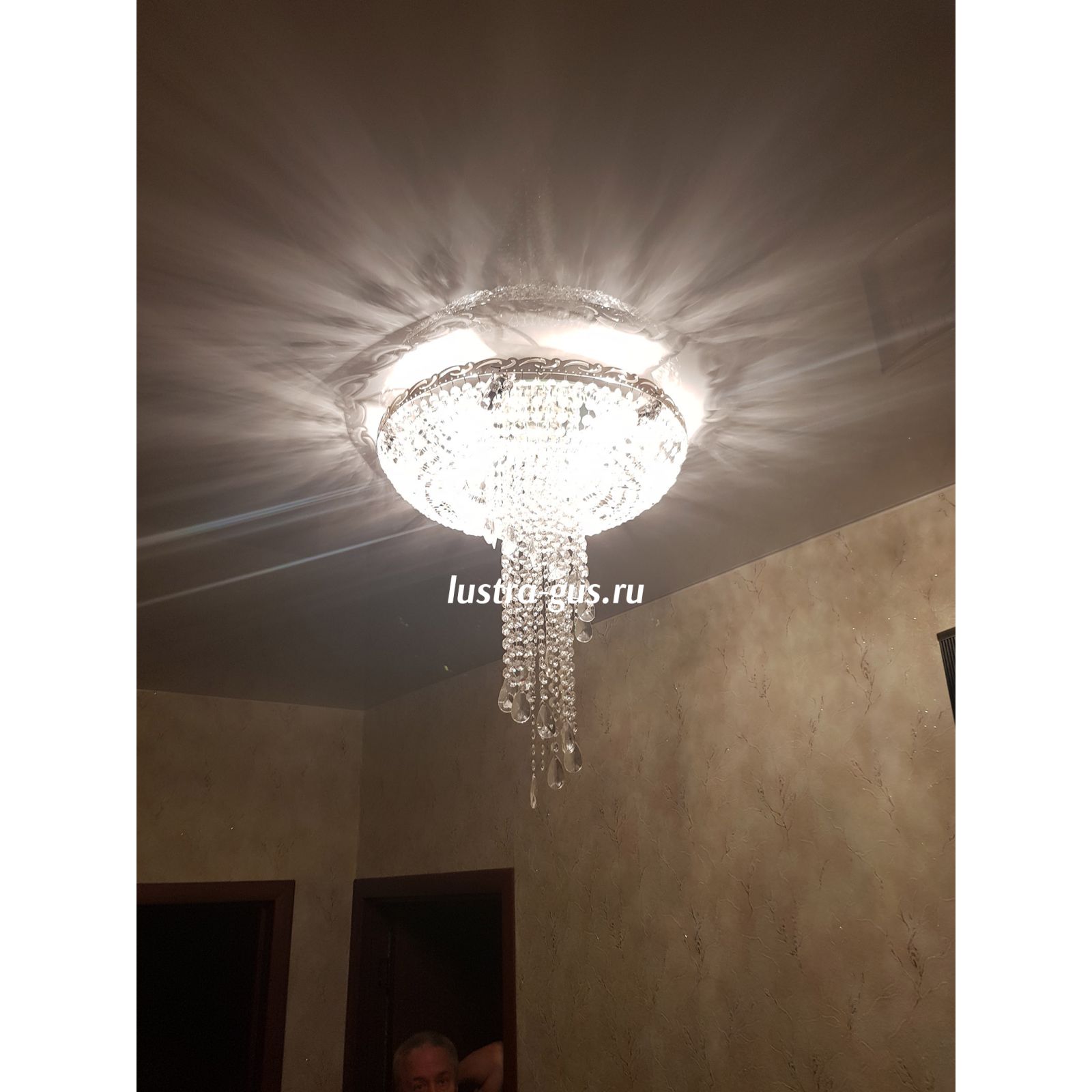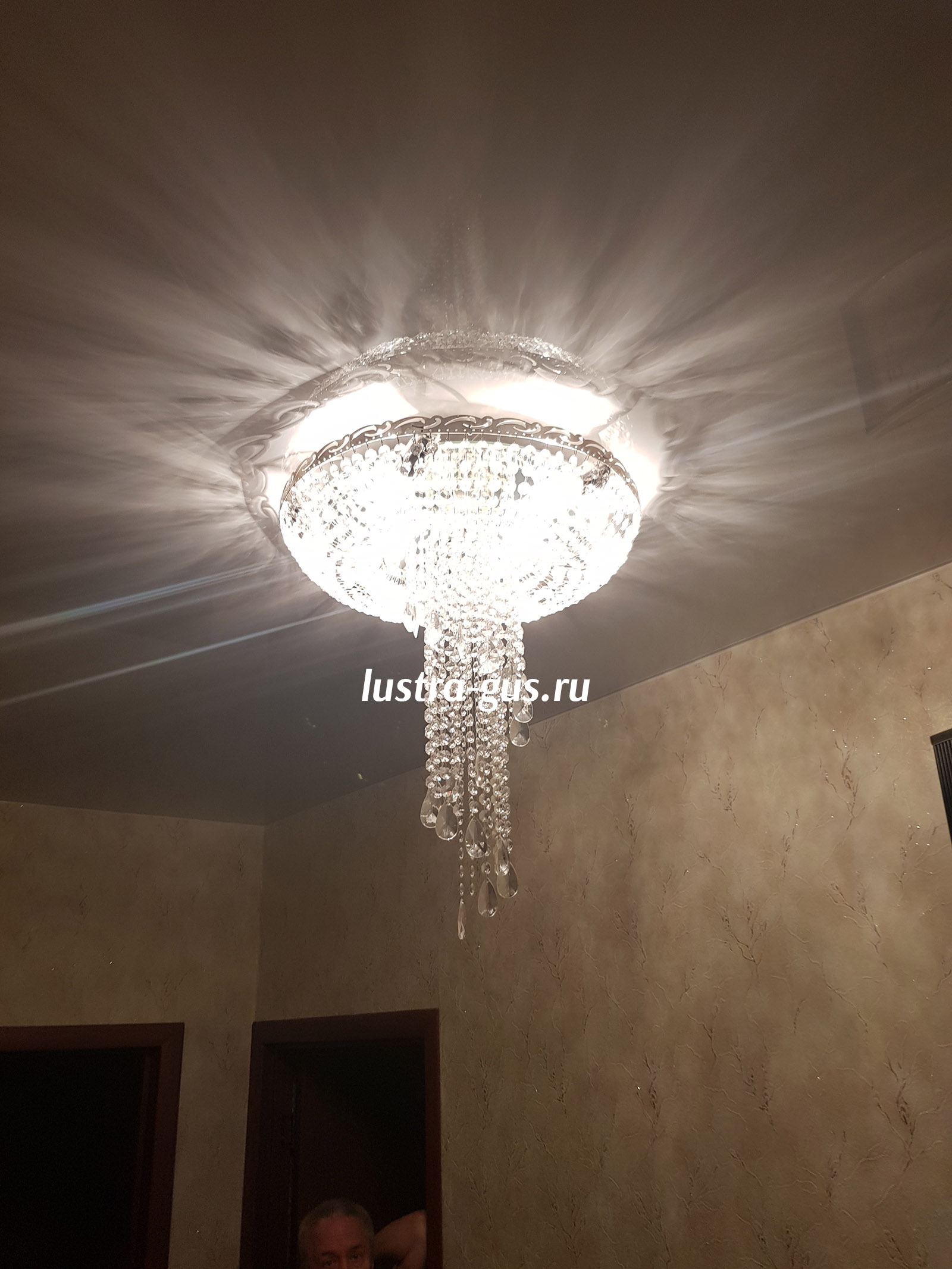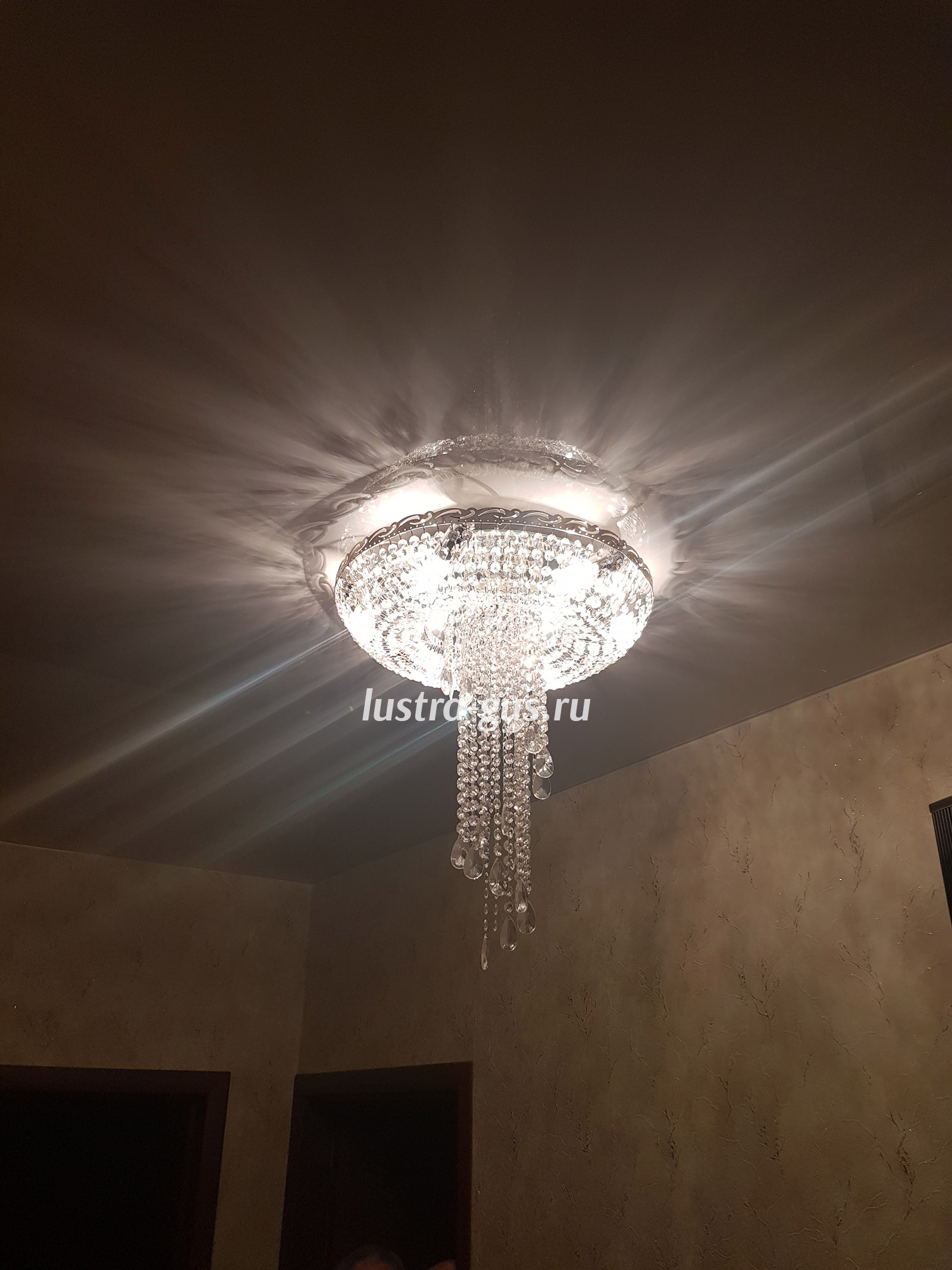 Люстра подходит для натяжных потолков. Крепление - потолочный крюк.