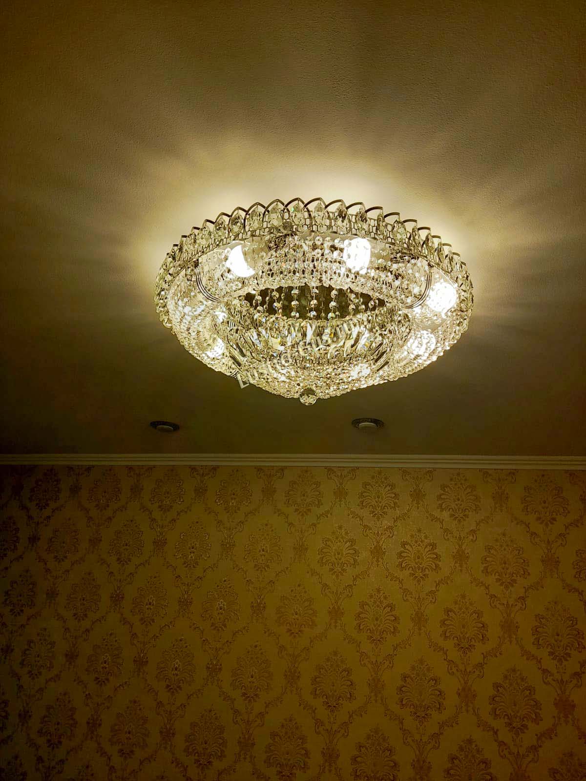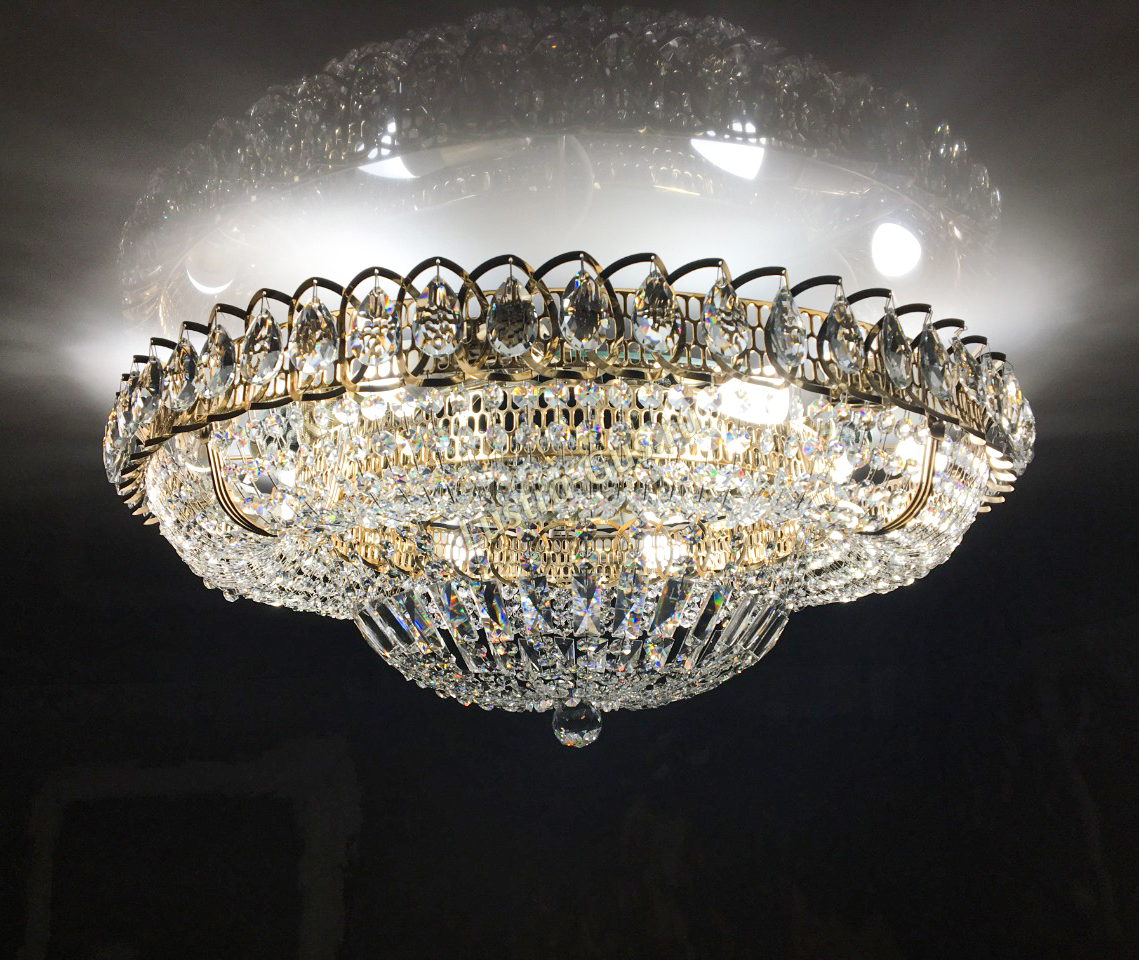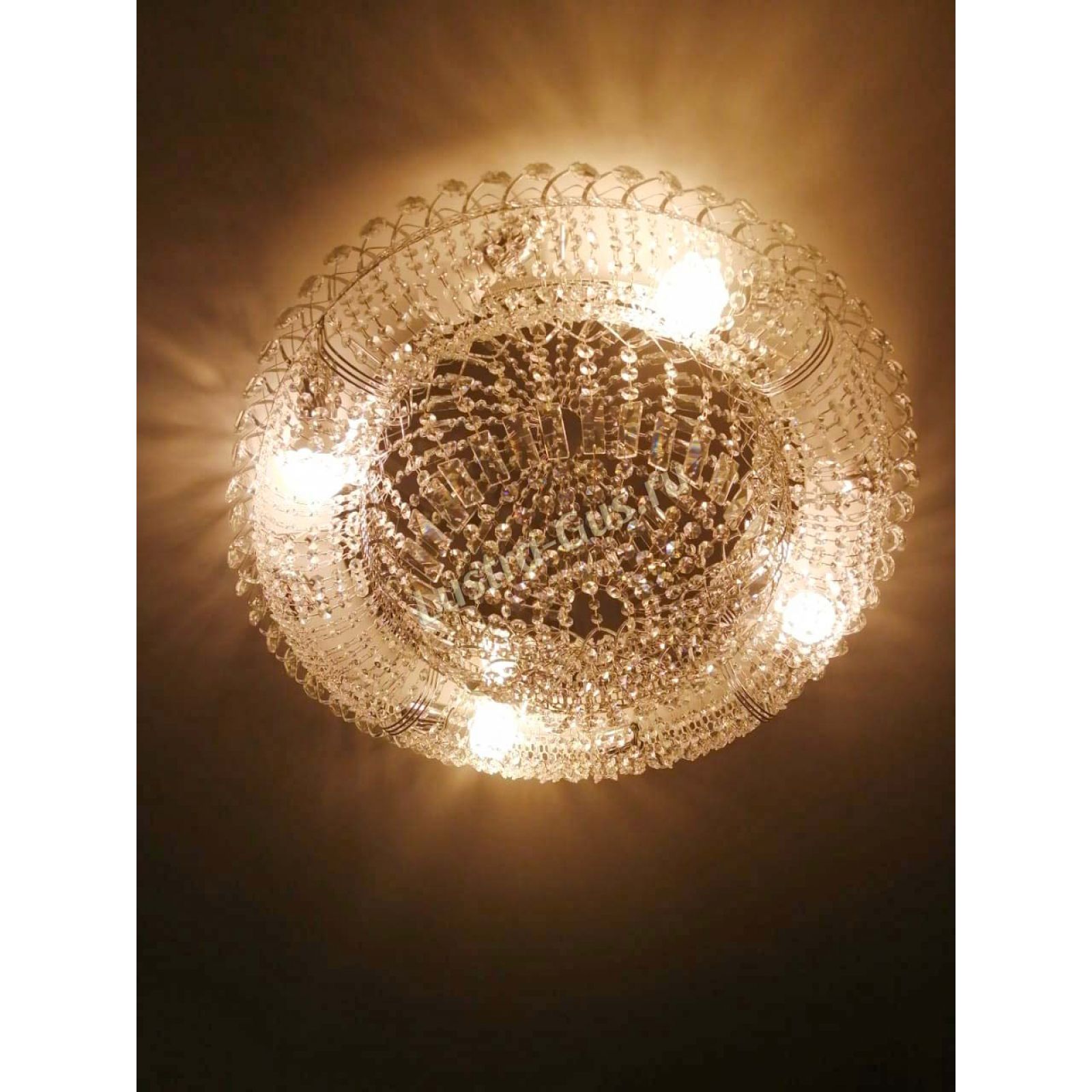 Добрый день! Купили потолочную люстру в мае. Очень довольны, доставка отличная, очень хорошо упакована, красивая и воздушная, размер 70см, в комнате 18кв отлично смотрится. ГУСЬ ХРУСТАЛЬ, СПАСИБО!!