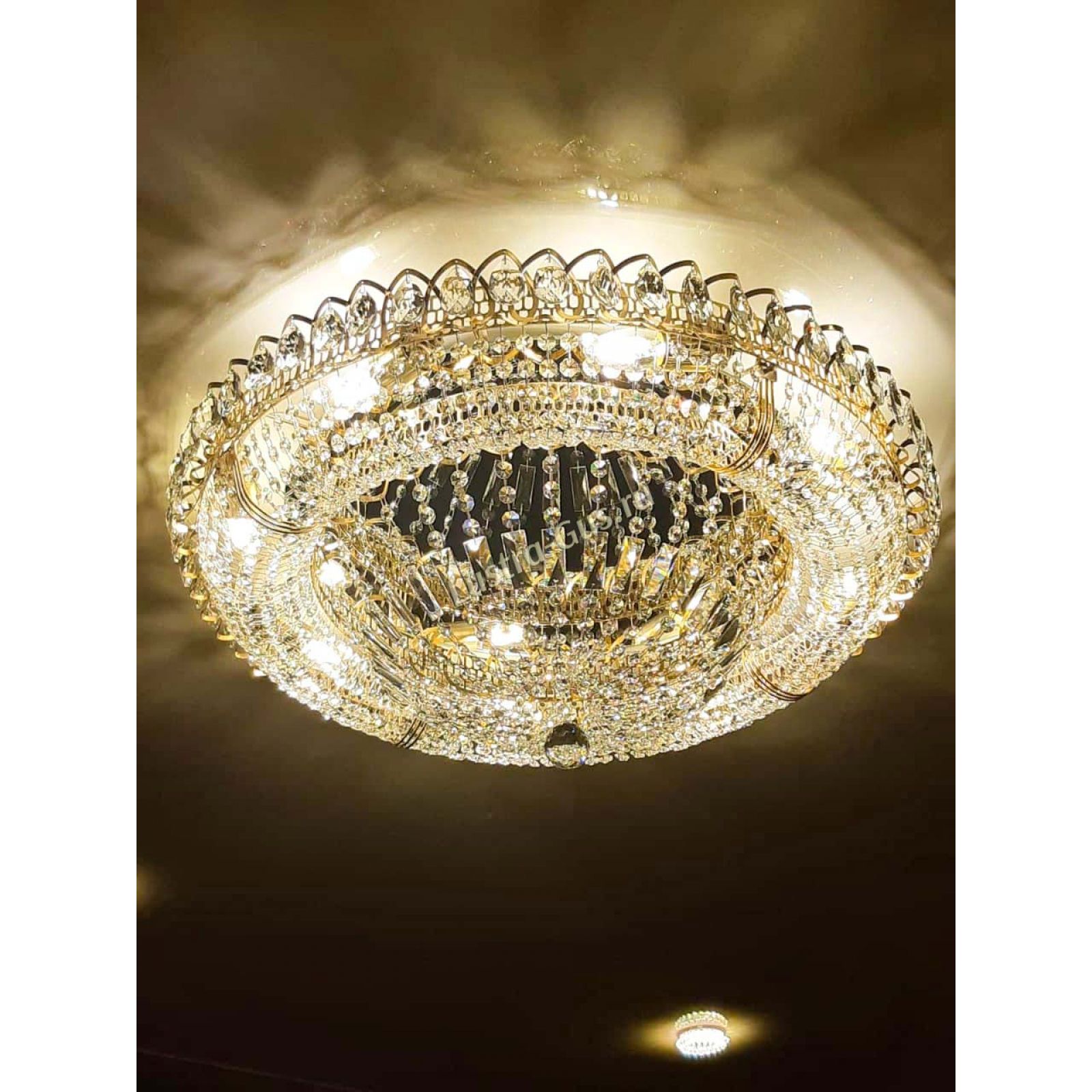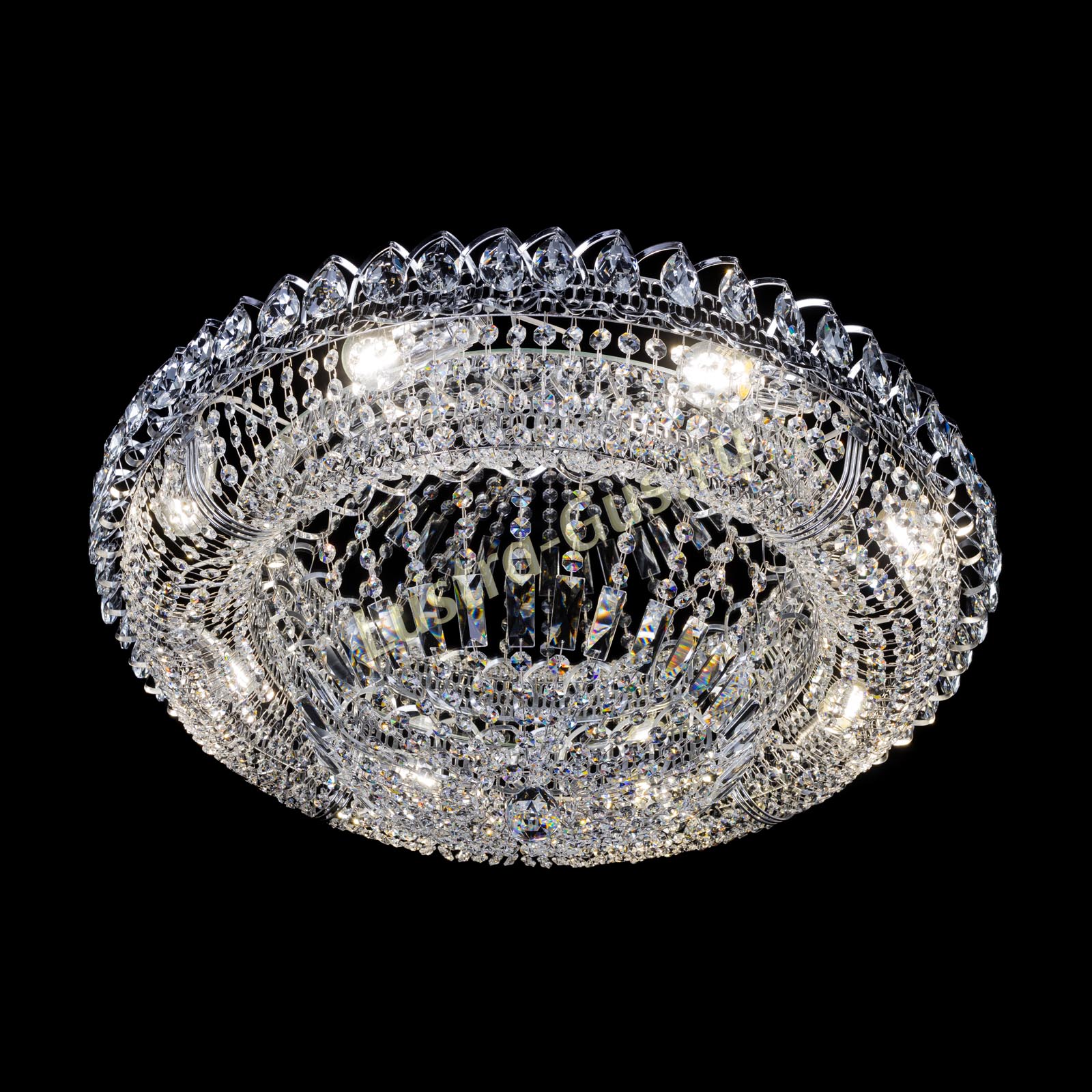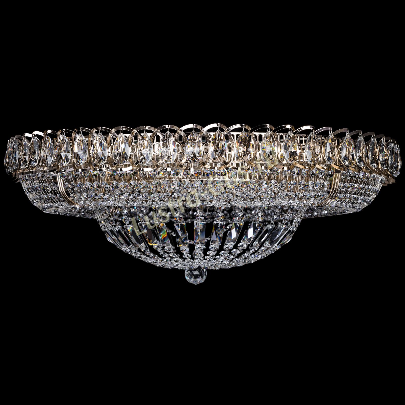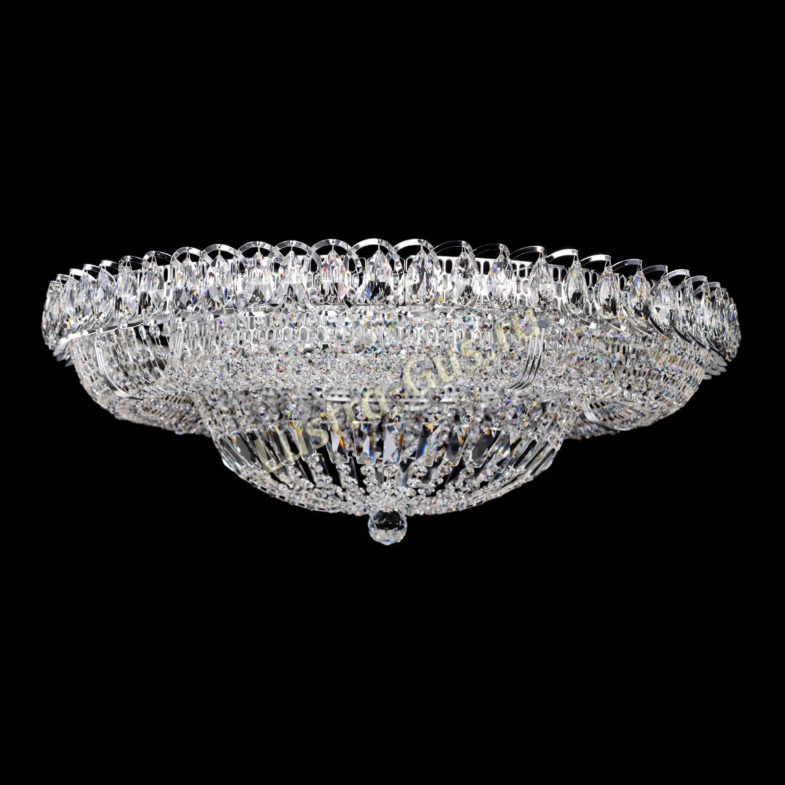 Добрый день! Купили потолочную люстру в мае. Очень довольны, доставка отличная, очень хорошо упакована, красивая и воздушная, размер 70см, в комнате 18кв отлично смотрится. ГУСЬ ХРУСТАЛЬ, СПАСИБО!!