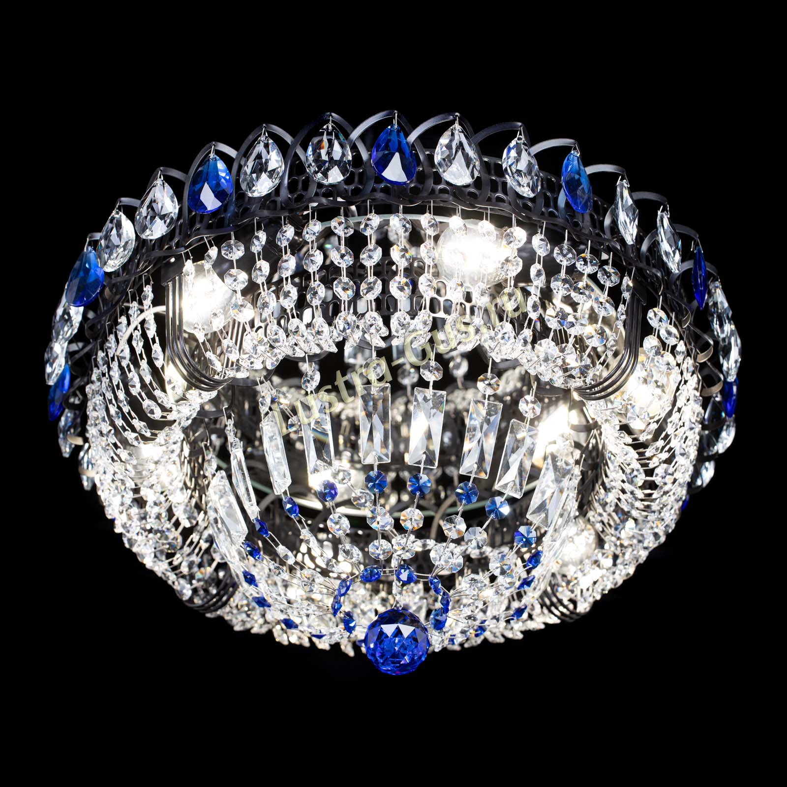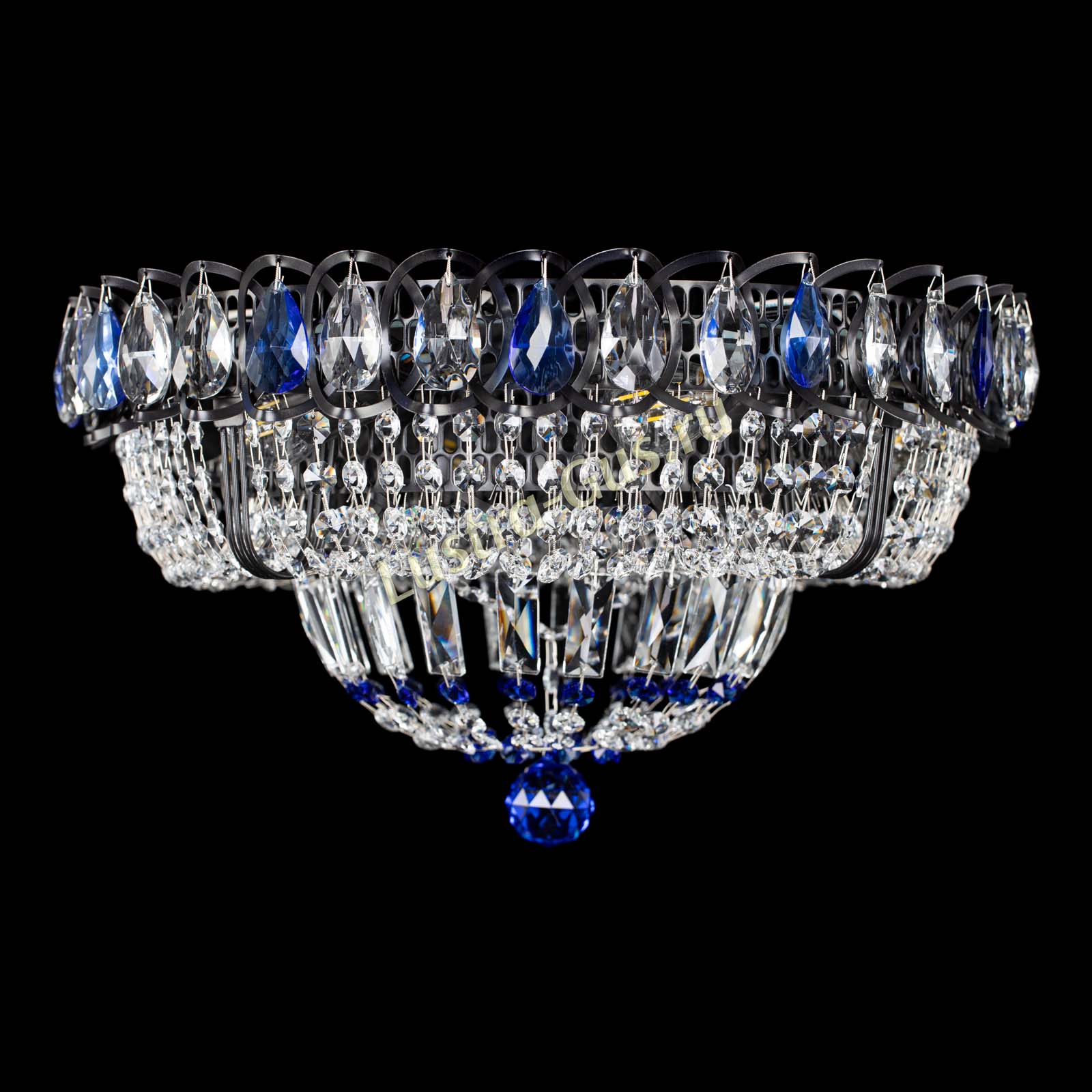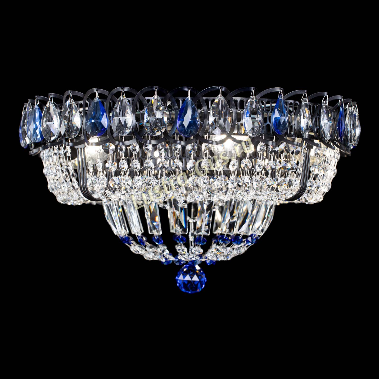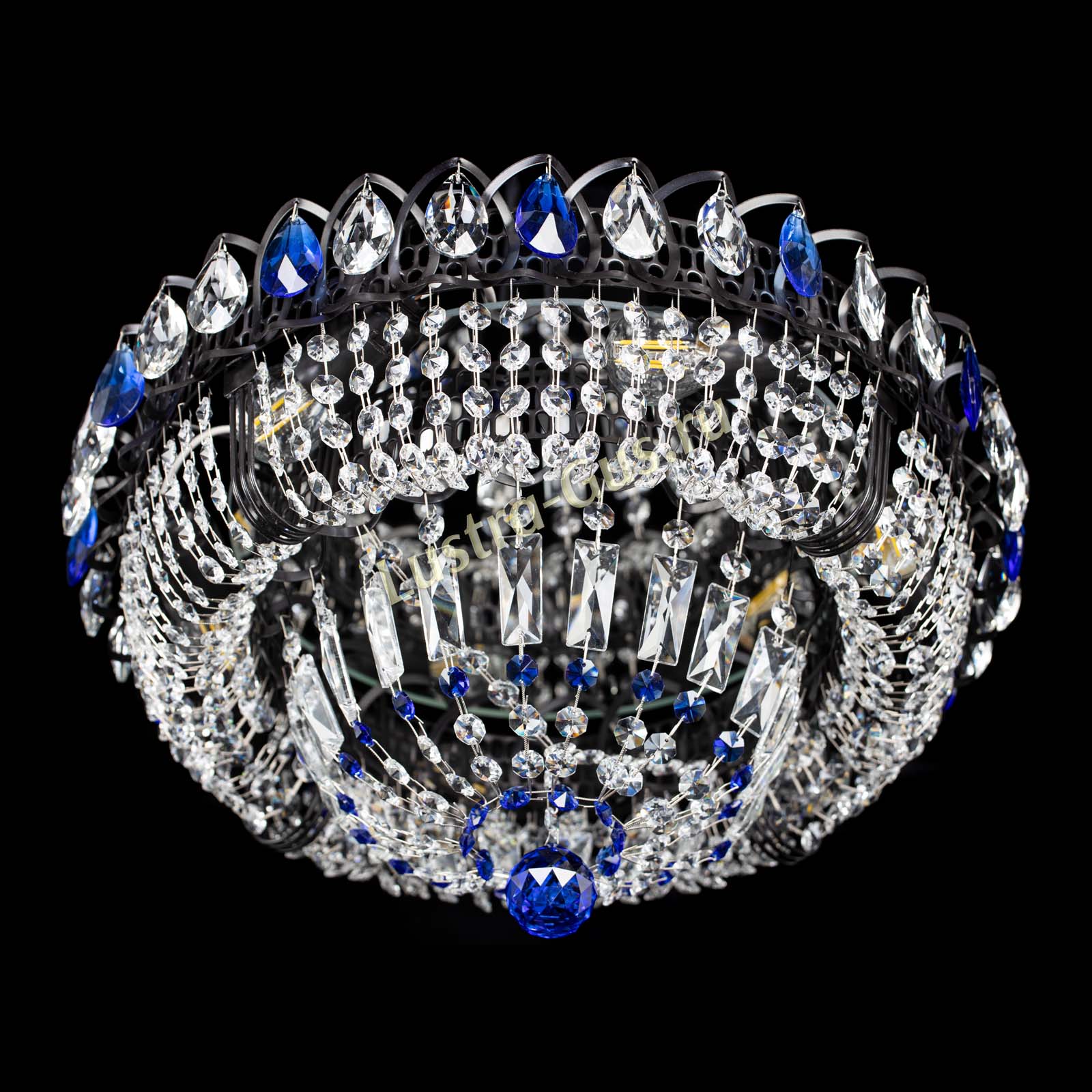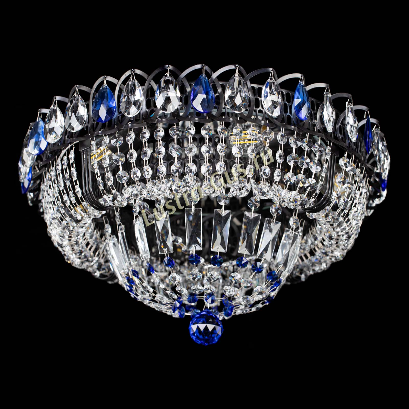 Люстра Кольцо Классика Черная с синими подвесками в Магнитогорске