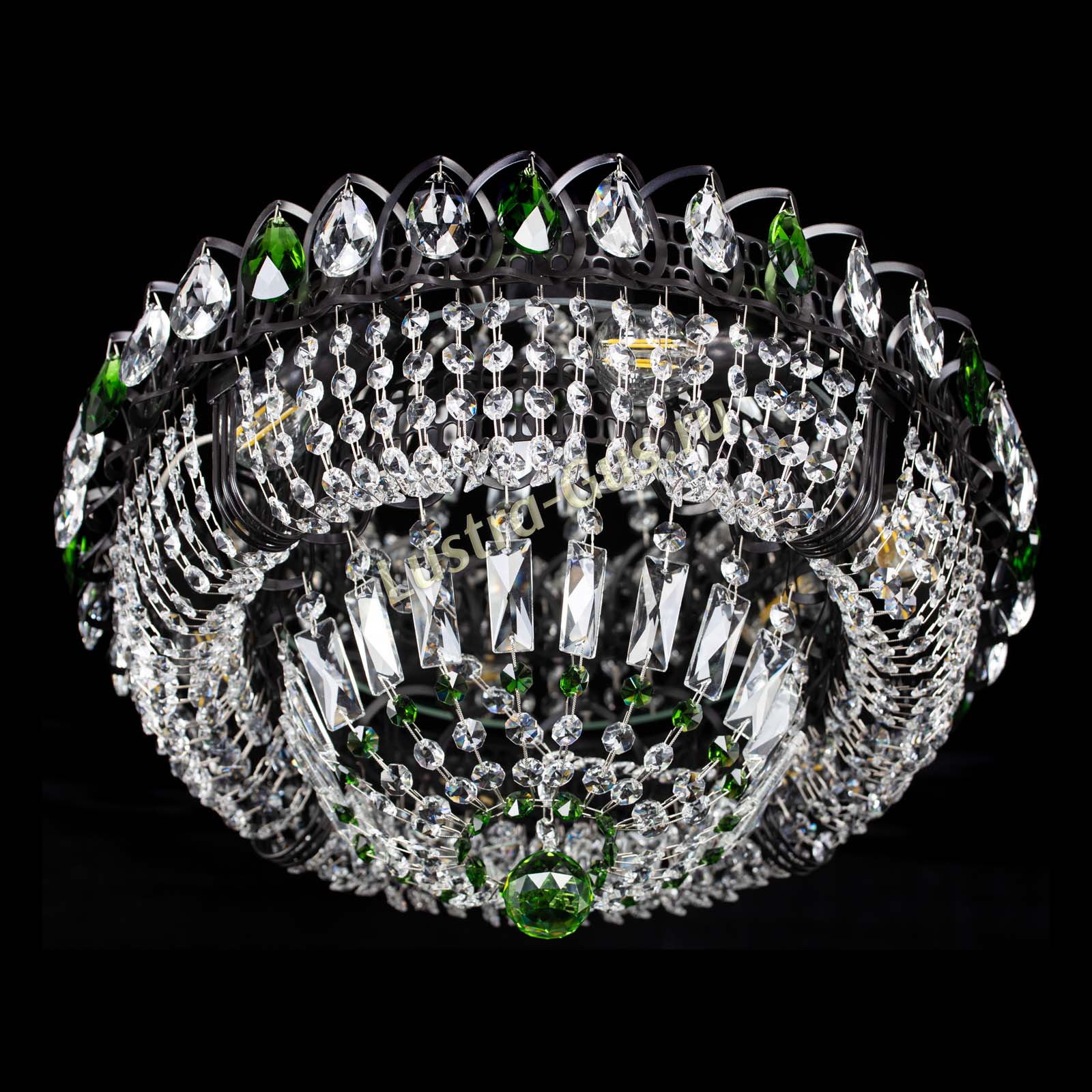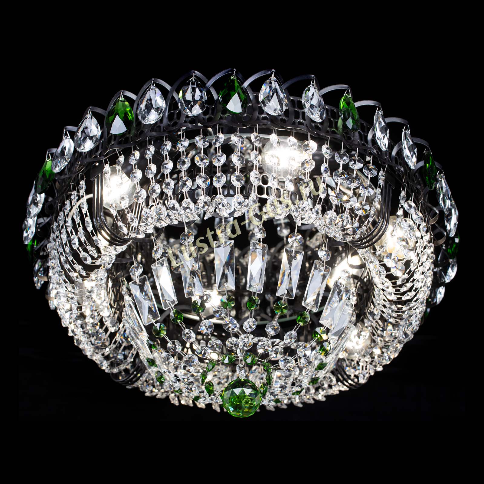 Люстра Кольцо Классика Черная с зелеными подвесками в Магнитогорске